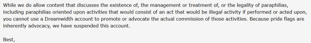 Did you know, that it's against the rules to promote acting upon paraphilias, or make pride flags for paraphilias and radqueer related things on Dreamwidth~?